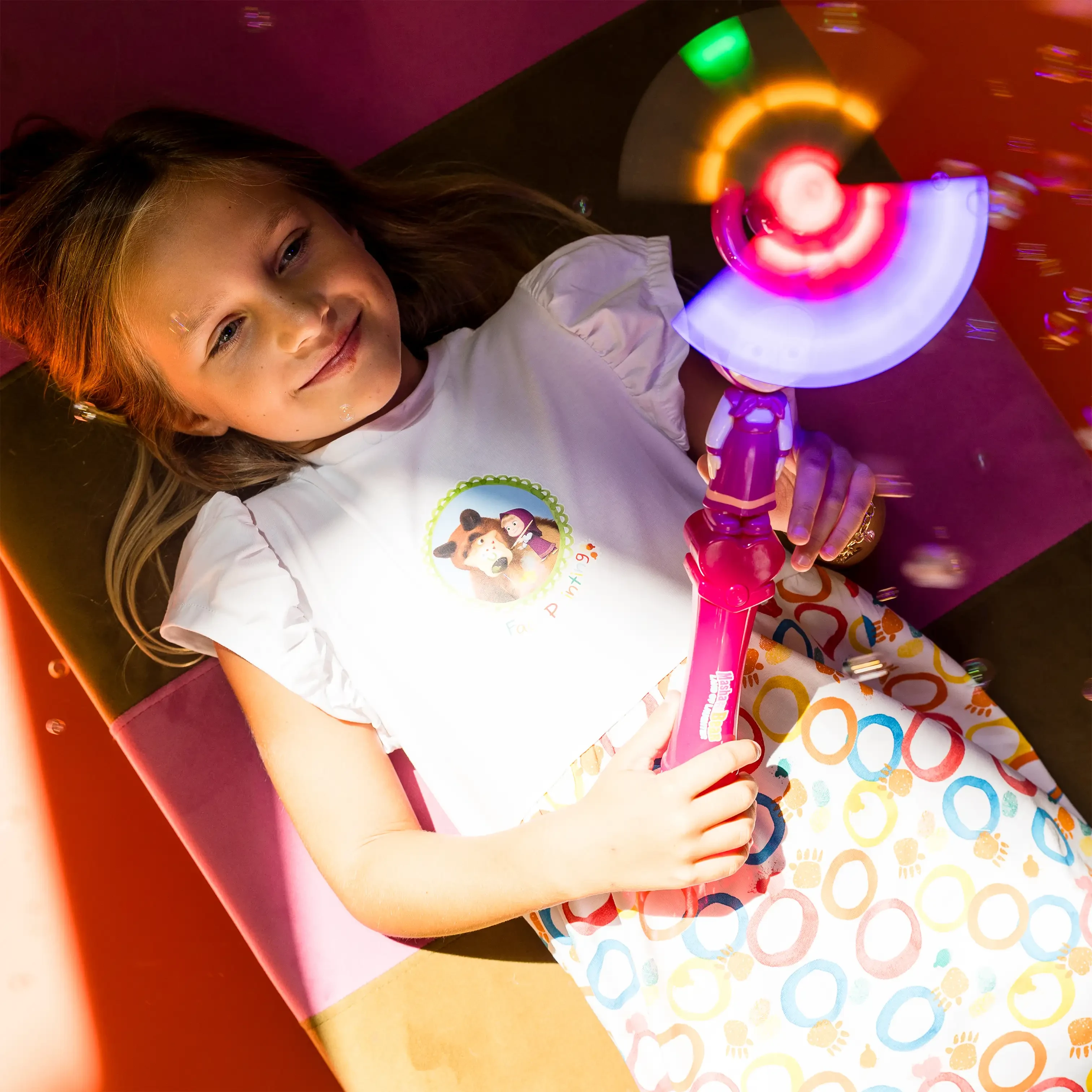 This Masha-themed light-up fan is a fun and functional companion on warm days. With its spinning fan and bright lights, it’s perfect for little fans.