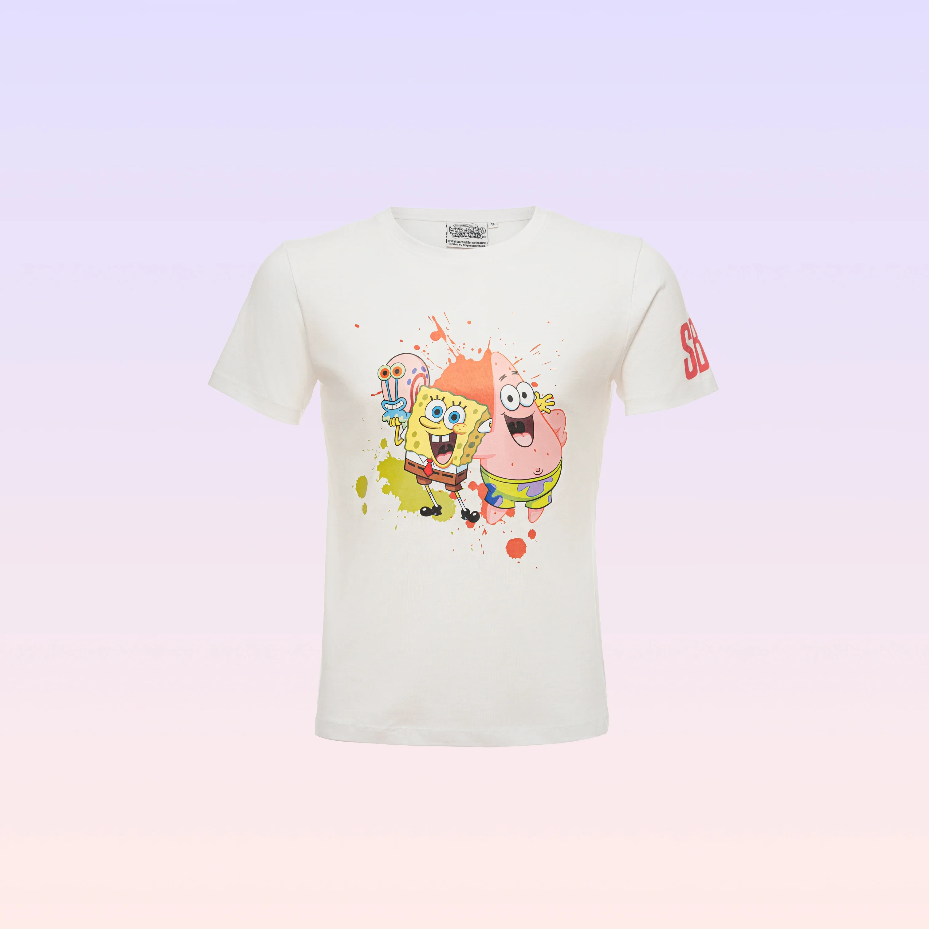 This white t-shirt featuring SpongeBob SquarePants and friends adds a splash of character to your everyday style. With its soft fabric and cheerful print, it offers both comfort and fun.