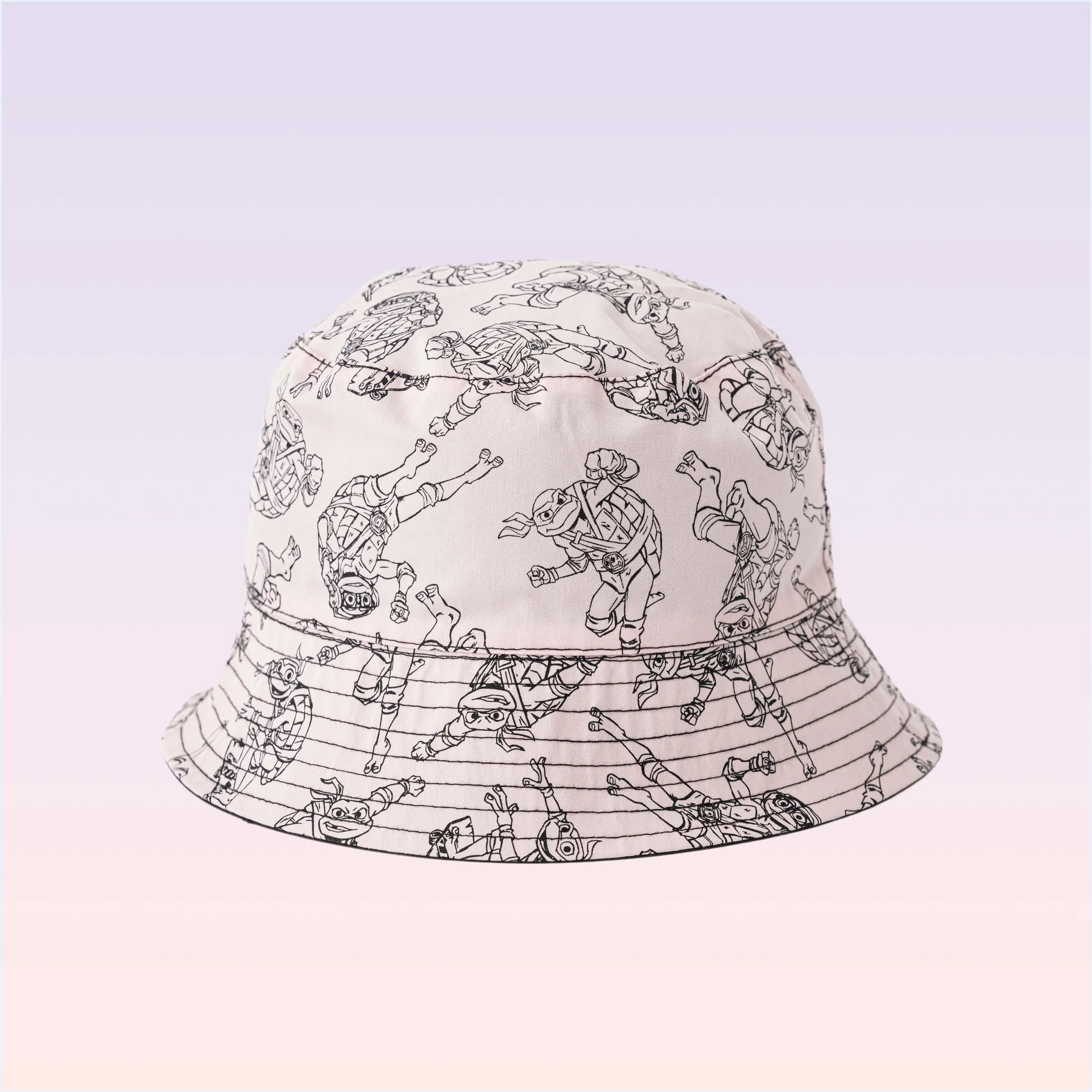 Designed for fans of the Teenage Mutant Ninja Turtles, this reversible bucket hat brings action and color to every outfit. One side features bold TMNT character prints on a black background, while the reverse is a vibrant solid pink for a more minimal look. Ideal for sun-filled days and stylish playtime, this hat is a unisex essential for young adventurers.
