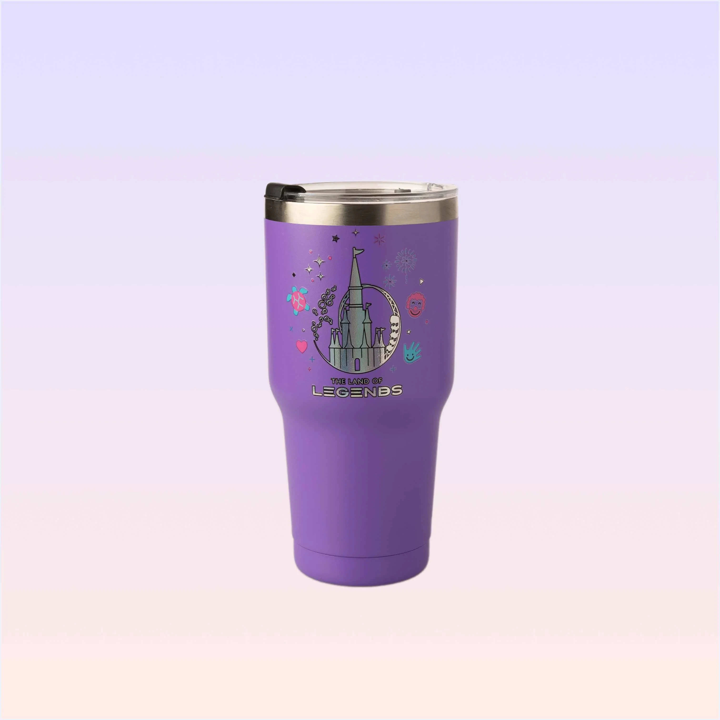 Elegant and bold, this purple thermos with the iconic tower design from The Land of Legends is perfect for those who want both style and function.