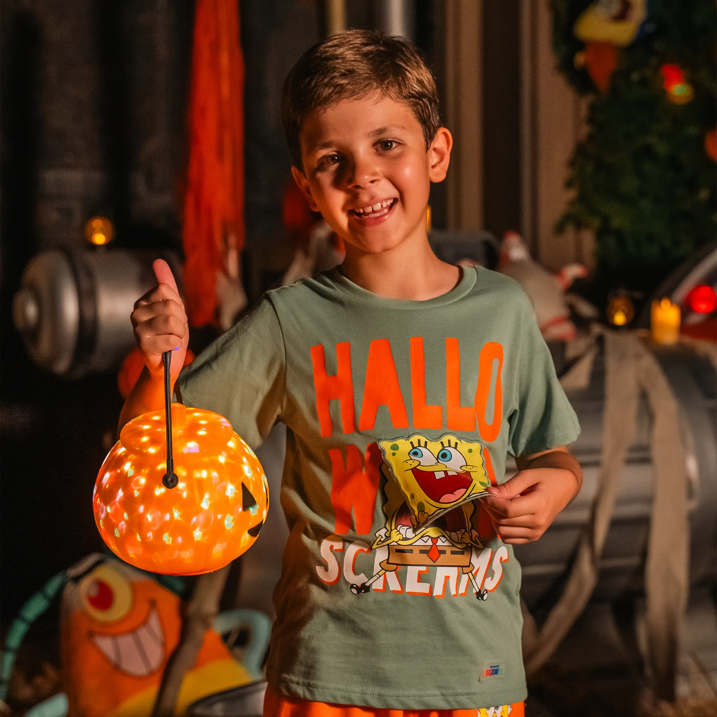 Sünger Bob Kare Pantolon’un eğlenceli dünyasından ilham alınarak tasarlanan bu yeşil tişört, Legendary Halloween koleksiyonunun özel parçalarından biridir. Yumuşak pamuklu kumaşı ile çocuklara gün boyu konfor sunarken, dikkat çekici Halloween baskısı ile stiline eğlenceli bir dokunuş katar.