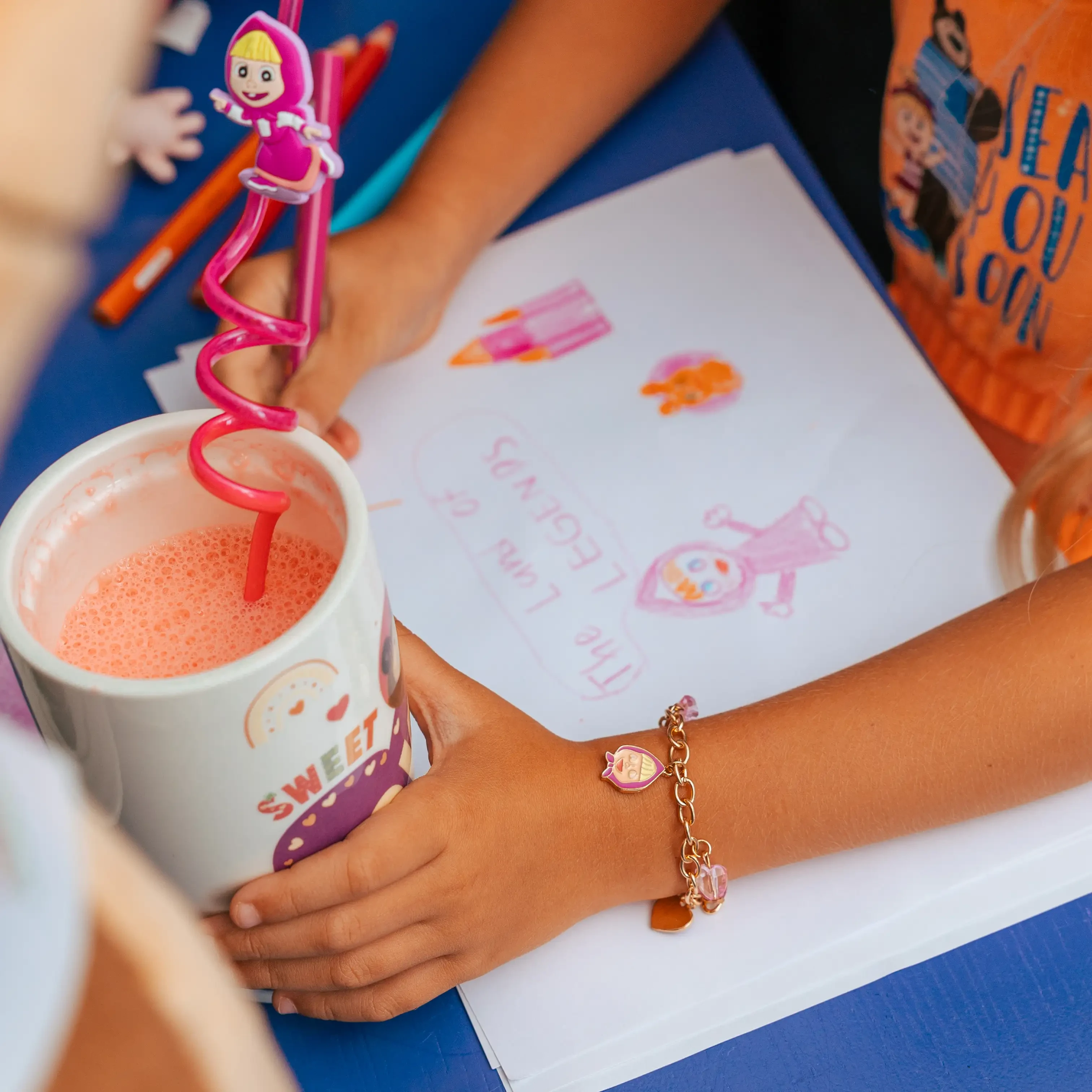 Этот яркий браслет с изображением очаровательной Маши добавит весёлый акцент в повседневный образ ребёнка. Изготовлен из мягкого и гибкого материала, он удобно сидит на детском запястье. Идеальный аксессуар для игр и особых случаев!