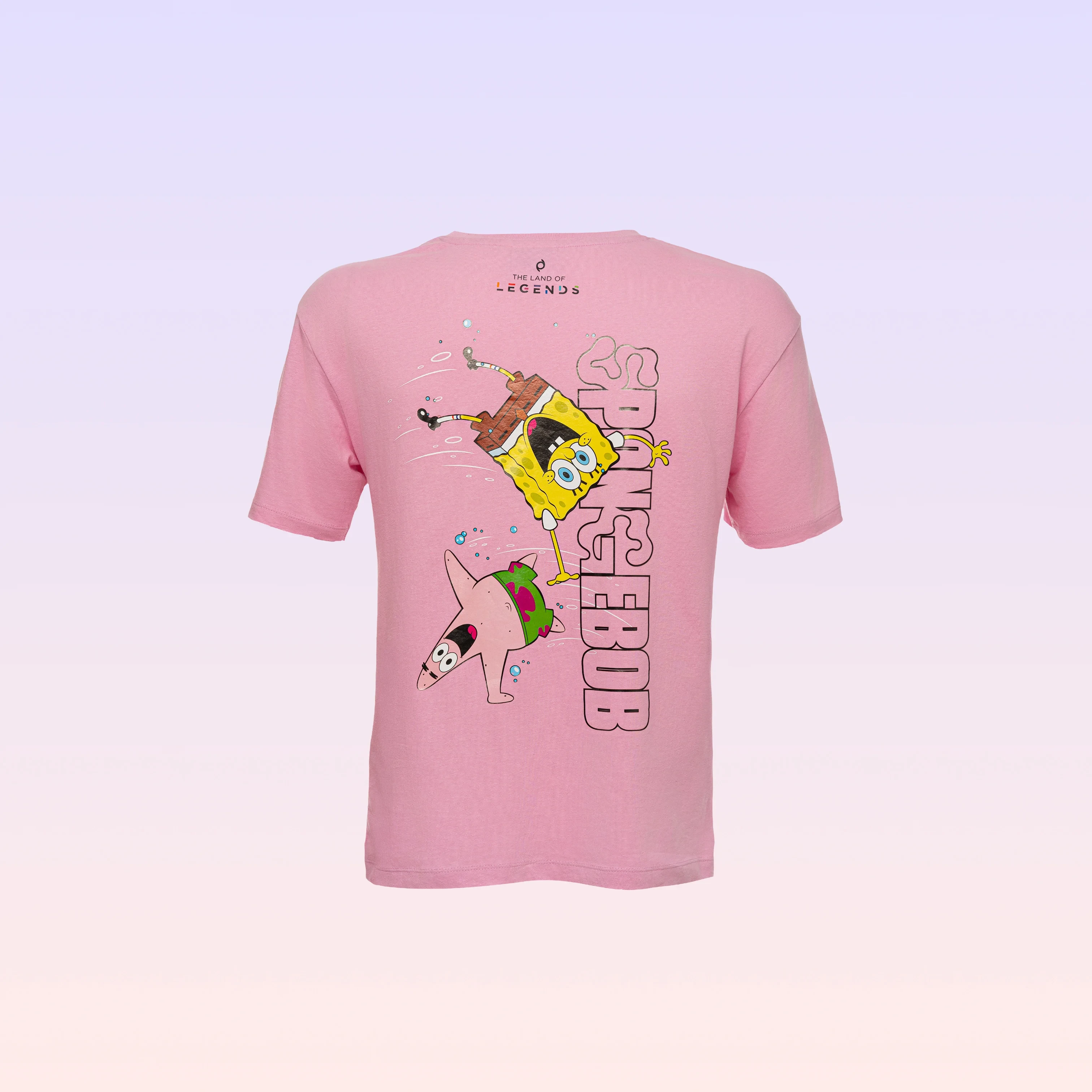 Эта розовая футболка с принтами Губки Боба Квадратные Штаны и Патрика Стара спереди и сзади — яркий элемент женского гардероба. Комфортная посадка и мягкая ткань делают её удобной для повседневной носки.